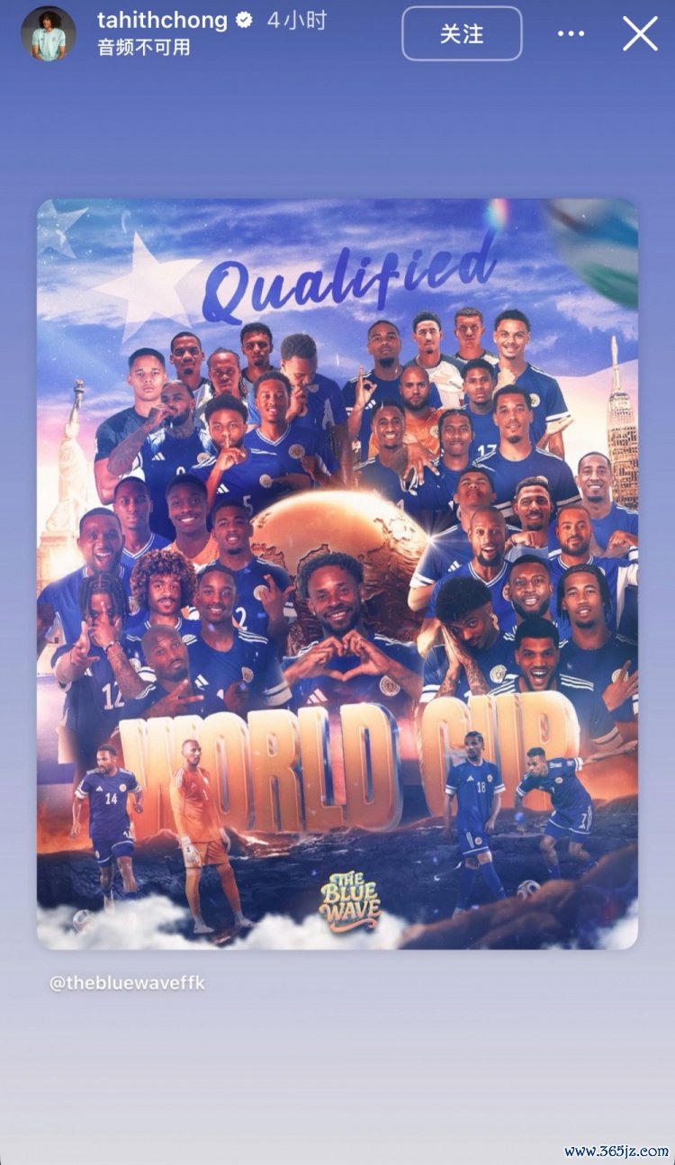 25岁华侨球员陈达毅(旧译为钟塔西)在比赛遣散后更新社媒,晒出了库拉索晋级天下杯的庆祝海报。
