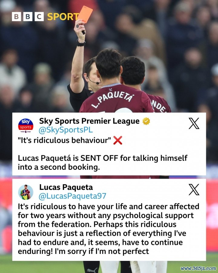 12月01日讯 英超第13轮,利物浦2-0礼服西汉姆联,西汉姆中场帕奎塔比赛中因抗议判罚,被主裁连出两黄,红牌罚下。
