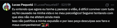 赛后,帕奎塔集会更新了个东说念主社媒,他先是用葡语发布动态,默示:“我显着当今在外东说念主眼里我得饰演“坏东说念主”的扮装,跟这些年在我生活里、在我的脸色上形成的所有创伤共处确凿太难了!