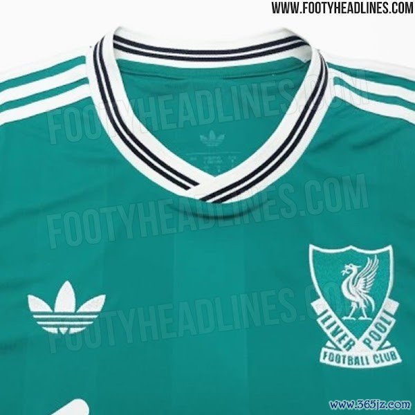 阿迪达斯三叶草将利物浦2025/26赛季的第三球衣狡计为薄荷绿主色彩,官方称呼则是“海洋绿”。