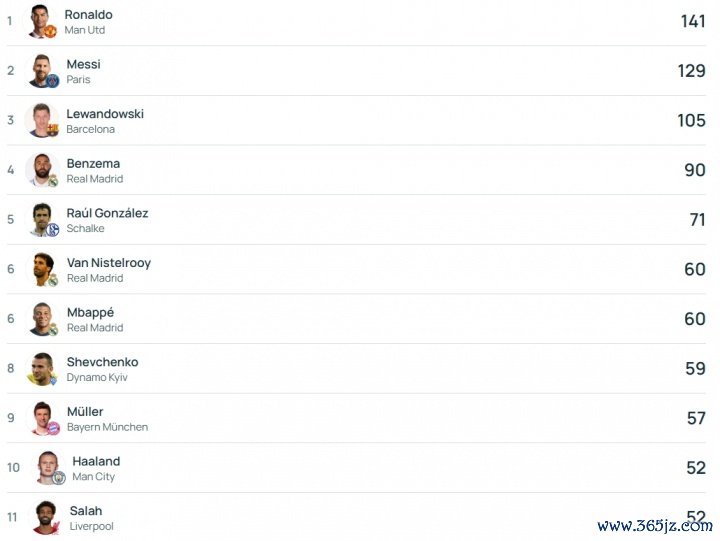 此役事后,哈兰德在欧冠赛场50场比赛打进52球,高出51球的亨利,挤进欧冠历史弓手榜前十,与萨拉赫比肩第10位。