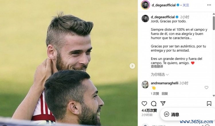 10月8日讯 不久前,德赫亚更新了酬酢媒体,请安秘书本赛季末端后退役的阿尔巴,两东谈主已经是西班牙国度队的队友。