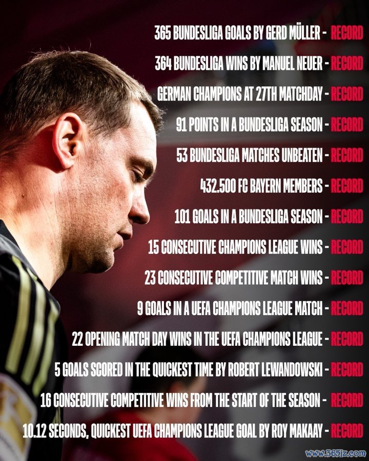 11月21日讯 拜仁官方更新社媒动态,晒出本队创造的各项记载。
