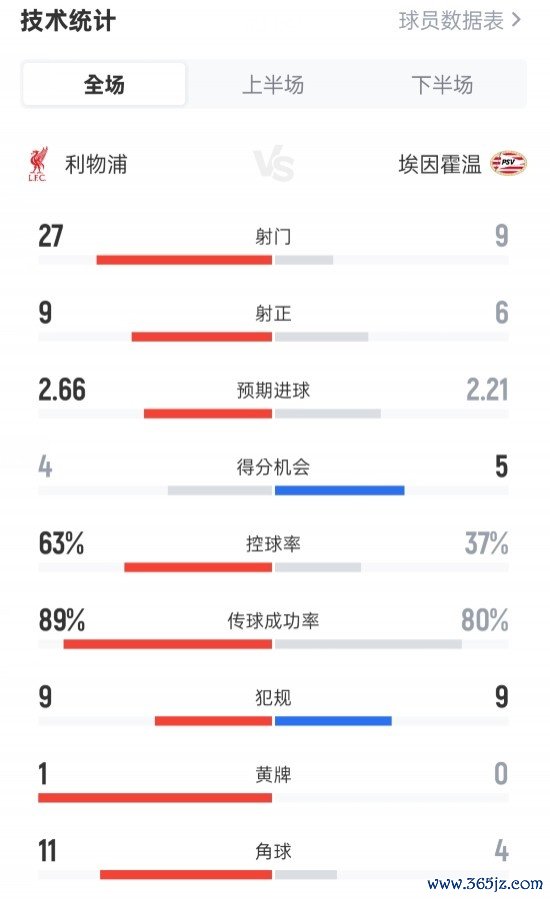 11月27日讯 欧冠联赛阶段第5轮,利物浦1-4不敌埃因霍温。