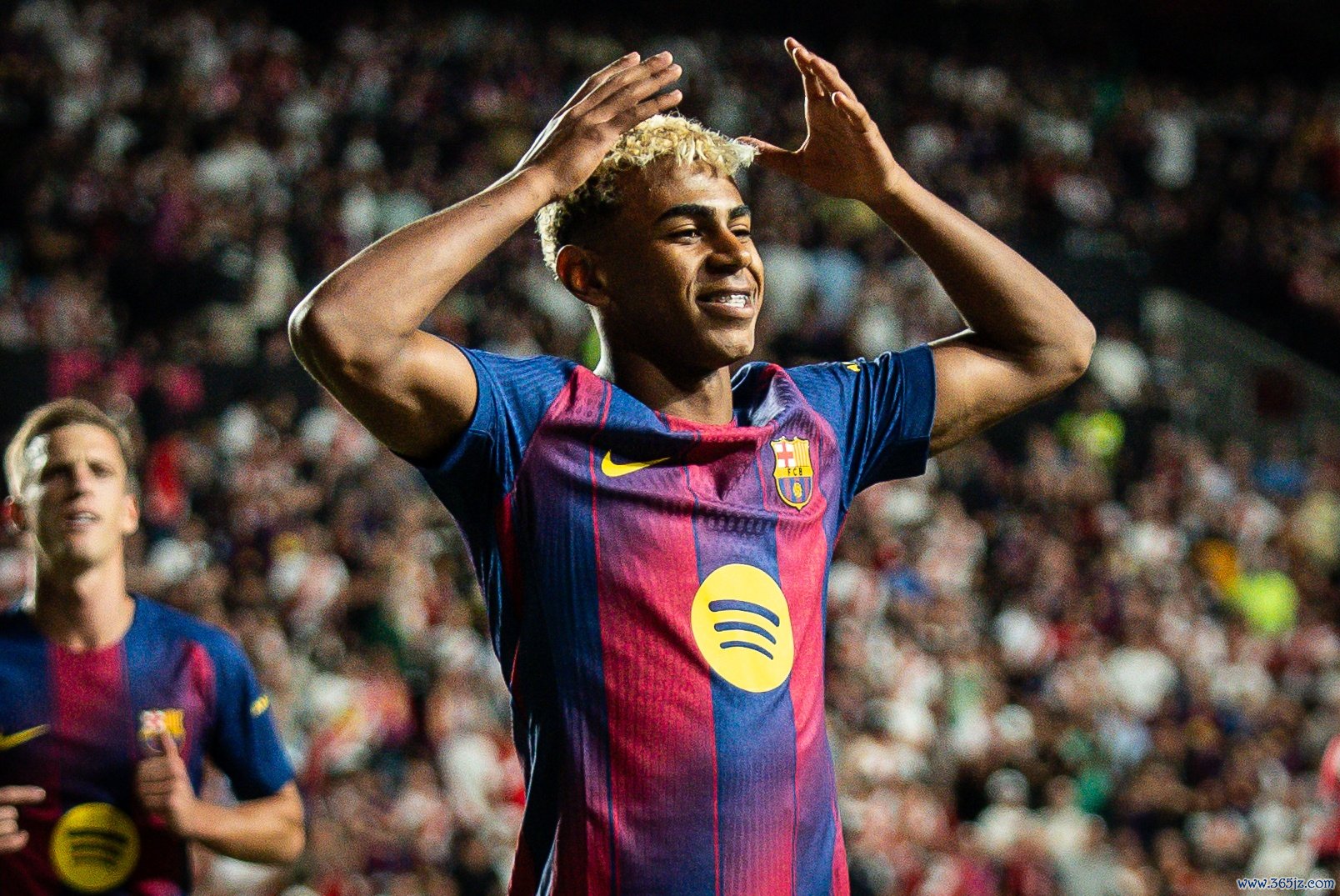 10月2日讯 欧冠联赛阶段第二轮比赛,巴萨在主场迎战卫冕冠军巴黎圣日耳曼。本场比赛,红蓝军团18岁小将亚马尔首发出战。