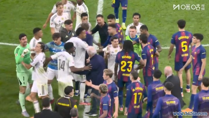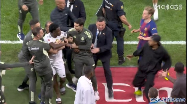 10月27日讯 国度德比赛后爆发第二次突破,两队混战!维尼修斯冲亚马尔聚合作念“闭嘴”手势,思动粗使命主谈主员死命拉住!