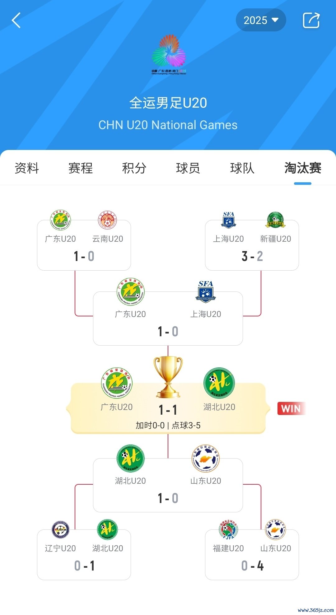 11月12日讯 全运会男足U20比赛落下帷幕,最终湖北U20队初度夺得金牌,广东U20队银牌,上海U20队铜牌,山东U20队第4。