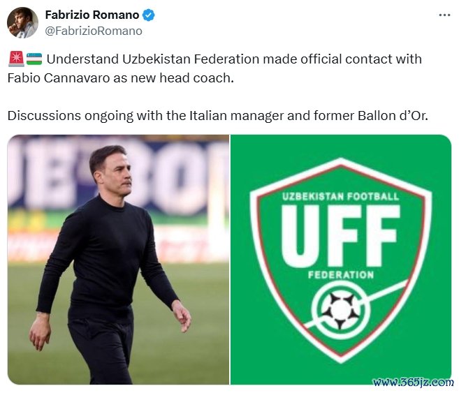 罗马诺获悉,乌兹别克斯坦足协如故崇拜构兵了卡纳瓦罗,研究其持教乌兹别克斯坦国度队的事宜,当今两边的谈判正在进行。