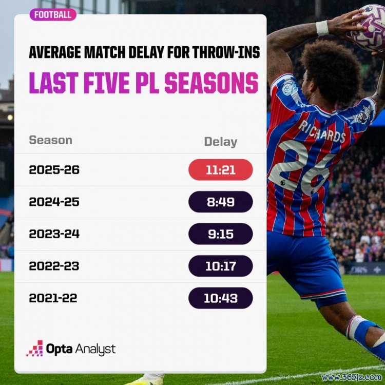 10月30日讯 Opta数据涌现,本赛季英超级待掷界外球的平均技能为11.21秒,近5年最久。