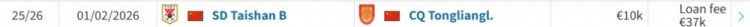 播出吧2月25日讯根据德转信息,泰山中央防守岳瑞杰租借铜梁龙的费用为3.7万欧(约合30万元人民币)。