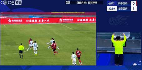 上半场比赛的第32分钟,国安前场快攻,王刚助攻杨立瑜门前捅射平直,但VAR偶然介入,认定国安伏击历程中,曹永竞有手球犯规,因此进球被吹掉。随后即是补时阶段戏剧性的一幕,国安的一粒点球认定到重罚,耗时10分钟,导致上半场补时长达17分钟。